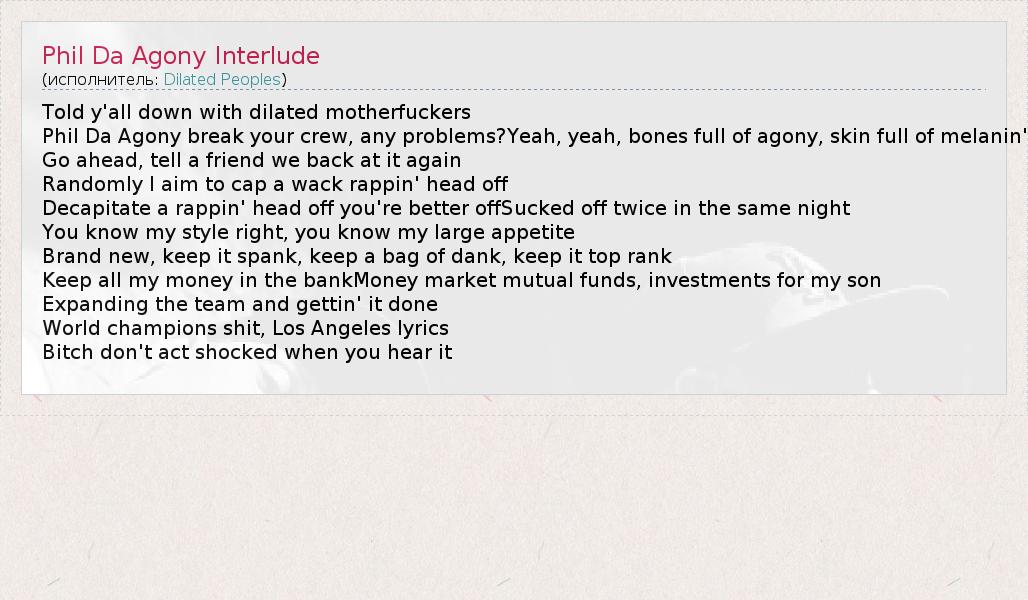 А как ты думаешь, о чем песня "Phil Da Agony Interlude" ?