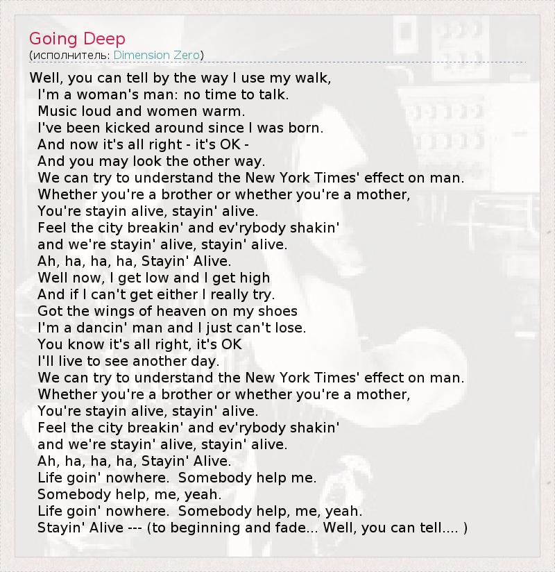 Stayin' Alive --- (to beginning and fade... Well, you can tell.... )