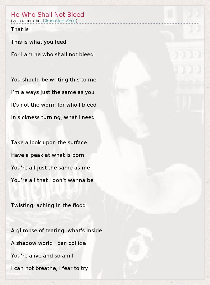 А как ты думаешь, о чем песня "He Who Shall Not Bleed" ?