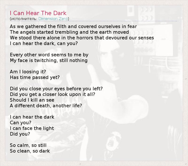 А как ты думаешь, о чем песня "I Can Hear The Dark" ?
