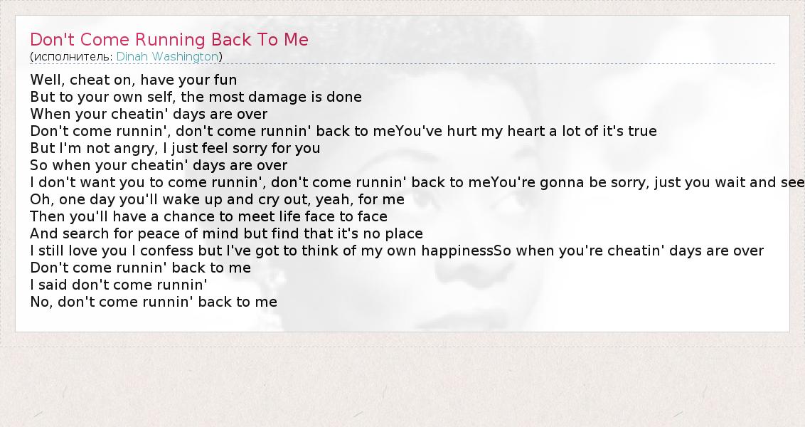 А как ты думаешь, о чем песня "Don't Come Running Back To Me" ?