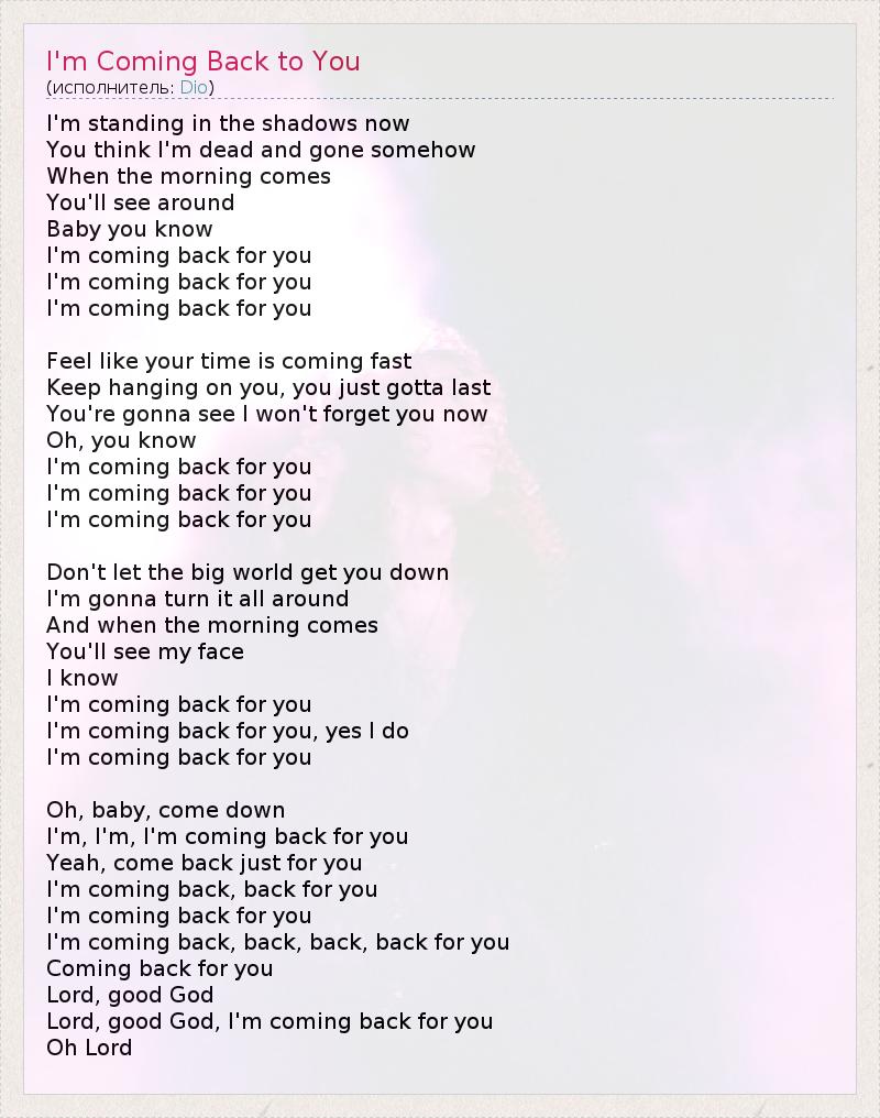 А как ты думаешь, о чем песня "I'm Coming Back to You" ?