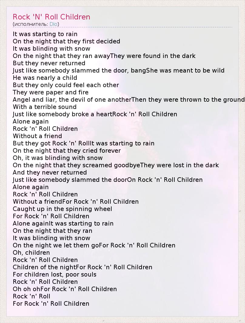 А как ты думаешь, о чем песня "Rock 'N' Roll Children" ?