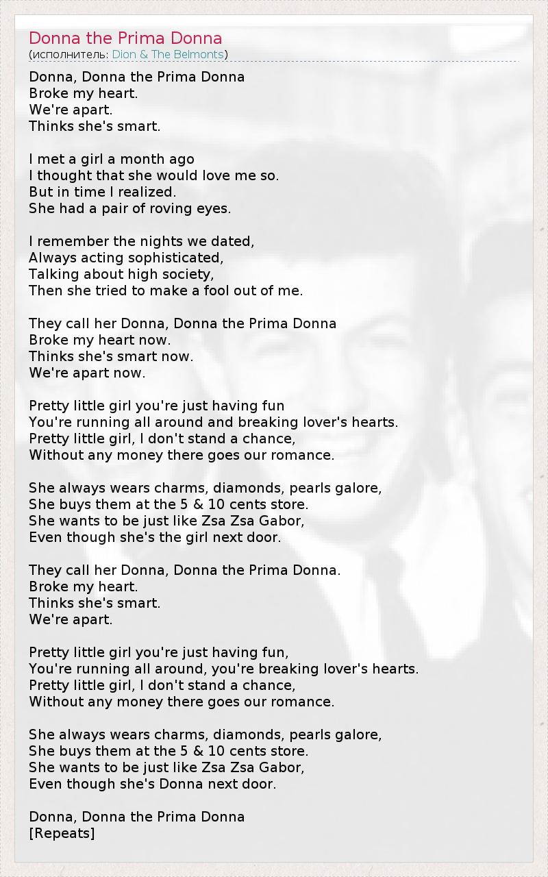 А как ты думаешь, о чем песня "Donna the Prima Donna" ?