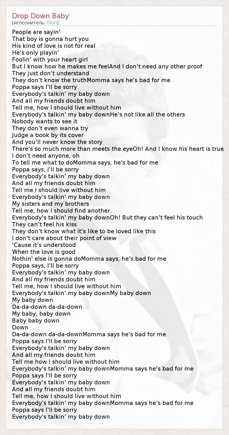 А как ты думаешь, о чем песня "Drop Down Baby" ?