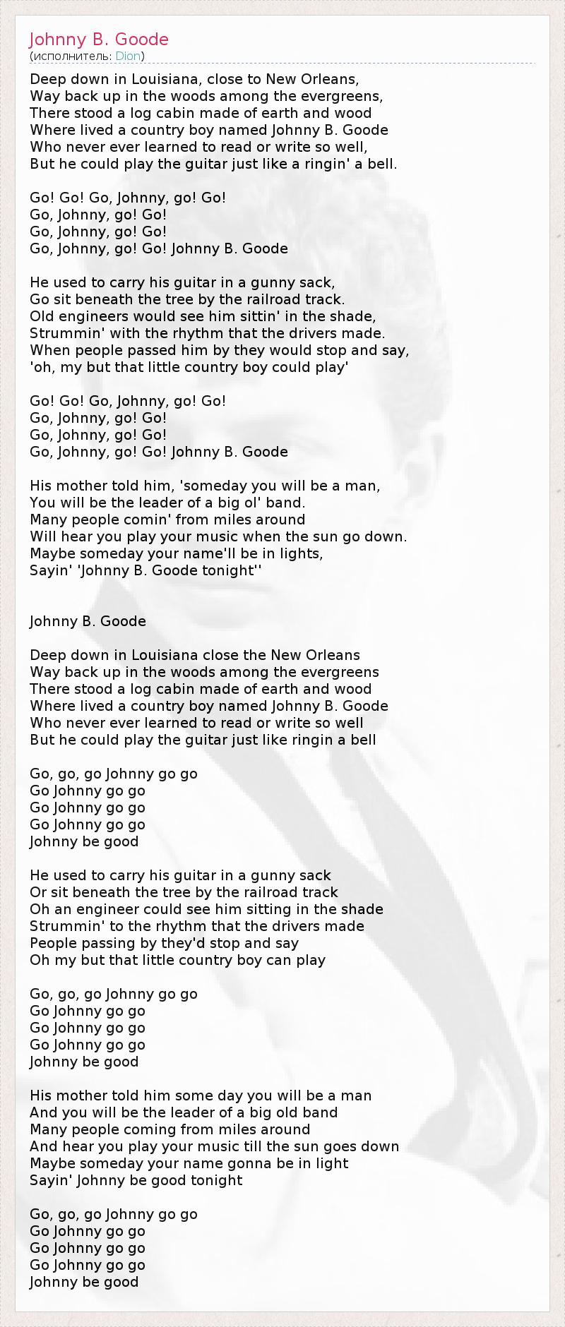 Гой, Джонни, Гой! Гой! Джонни Би Гуд.