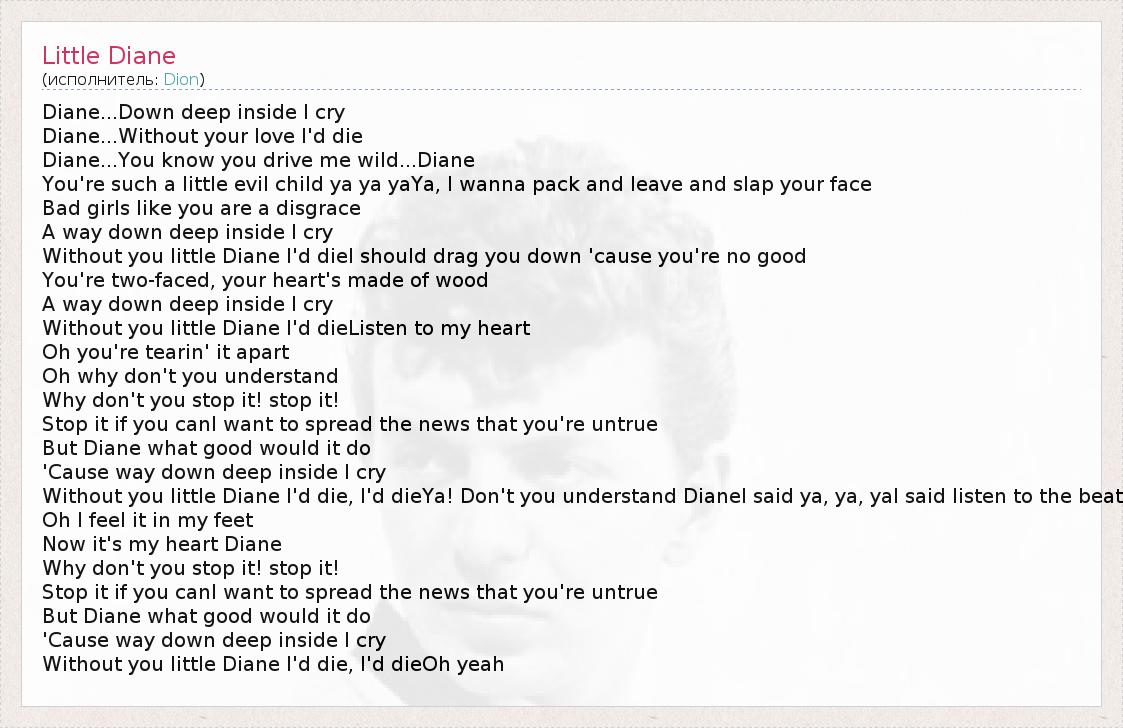 А как ты думаешь, о чем песня "Little Diane" ?
