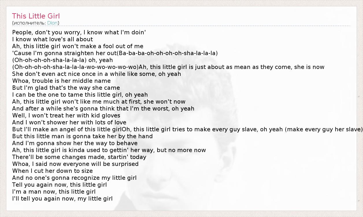 А как ты думаешь, о чем песня "This Little Girl" ?