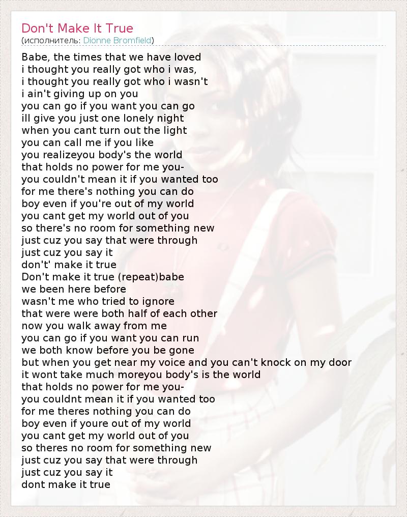 А как ты думаешь, о чем песня "Don't Make It True" ?