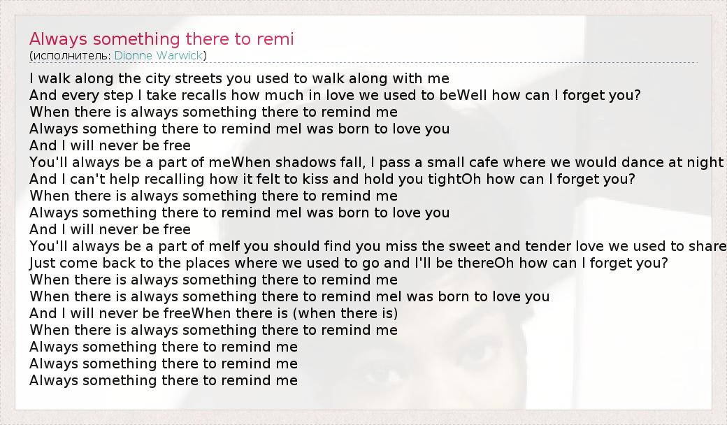 А как ты думаешь, о чем песня "Always something there to remi" ?