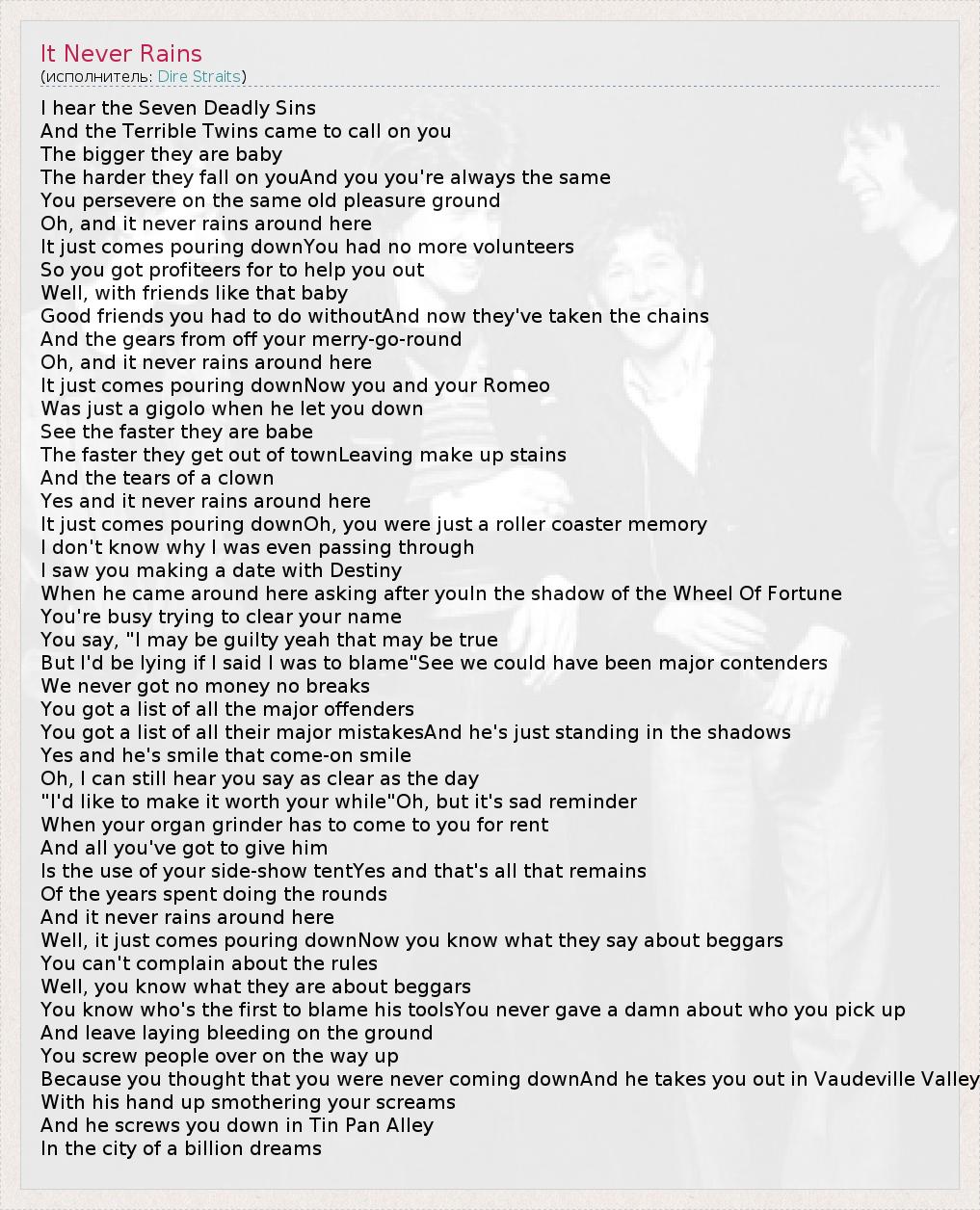 А как ты думаешь, о чем песня "It Never Rains" ?