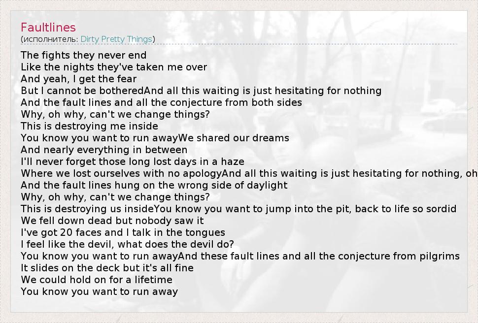 You know you want to run awayAnd these fault lines and all the conjecture from pilgrims
