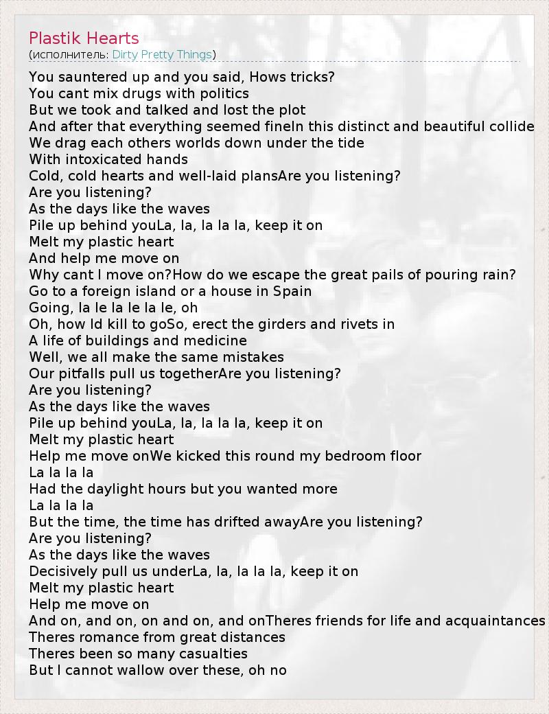 А как ты думаешь, о чем песня "Plastik Hearts" ?