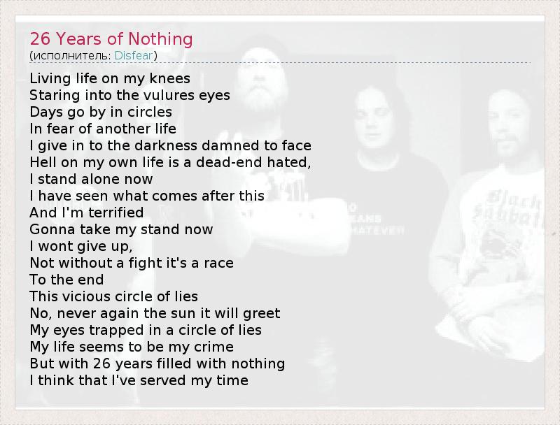 А как ты думаешь, о чем песня "26 Years of Nothing" ?