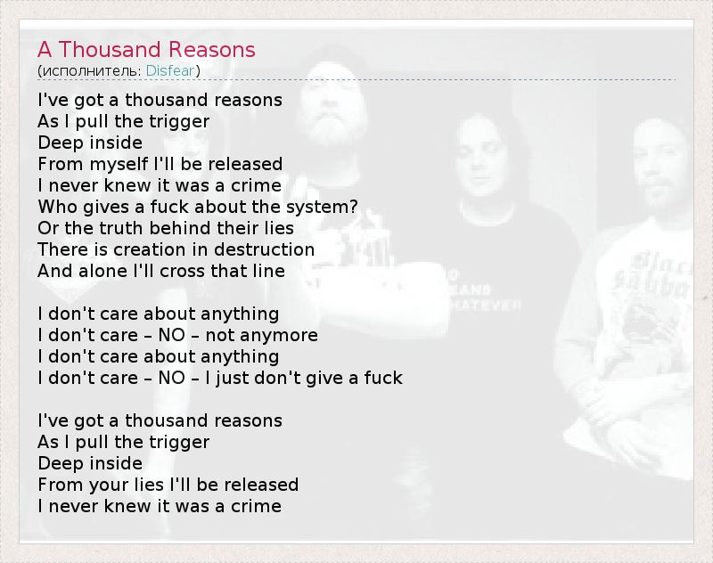 А как ты думаешь, о чем песня "A Thousand Reasons" ?