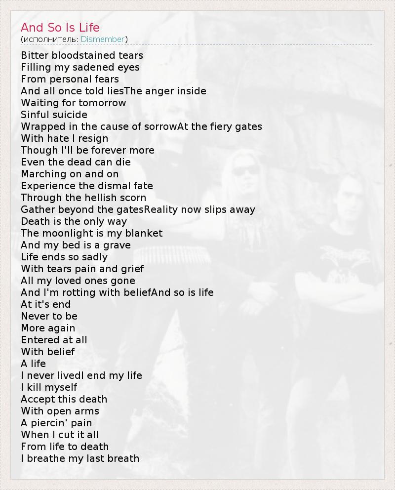 А как ты думаешь, о чем песня "And So Is Life" ?