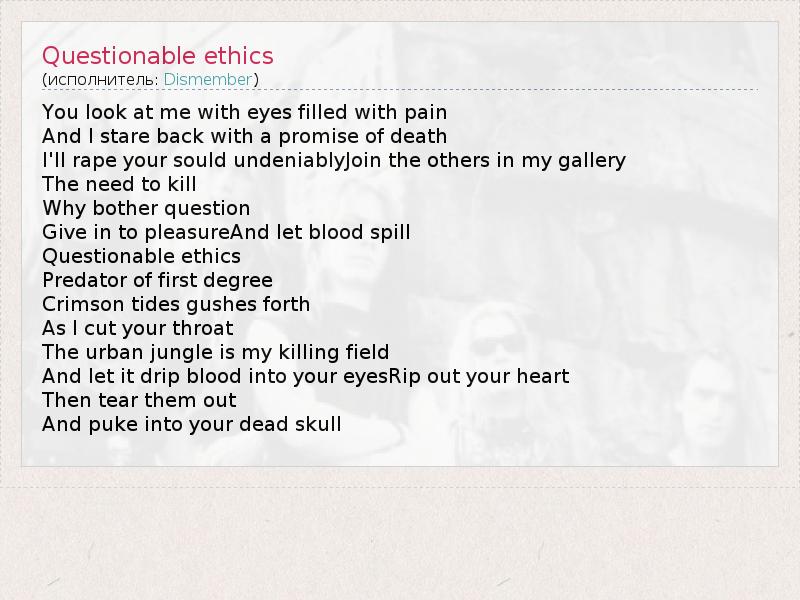 А как ты думаешь, о чем песня "Questionable ethics" ?