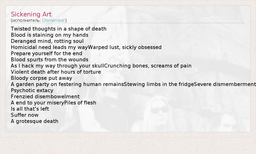 А как ты думаешь, о чем песня "Sickening Art" ?