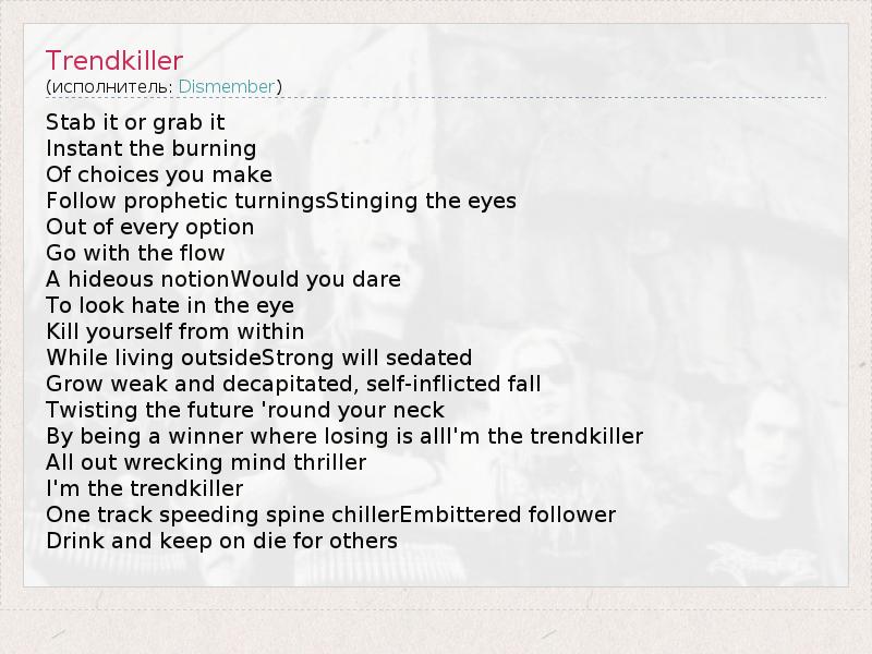 А как ты думаешь, о чем песня "Trendkiller" ?