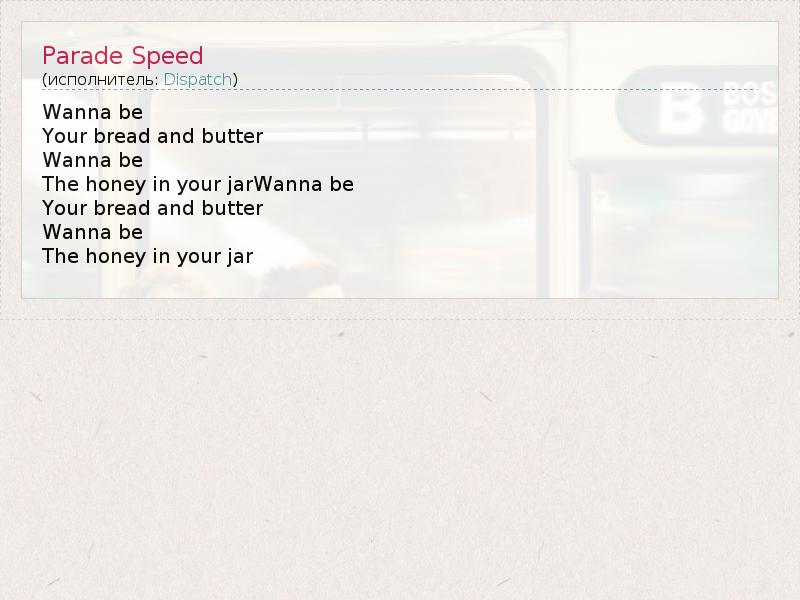 А как ты думаешь, о чем песня "Parade Speed" ?