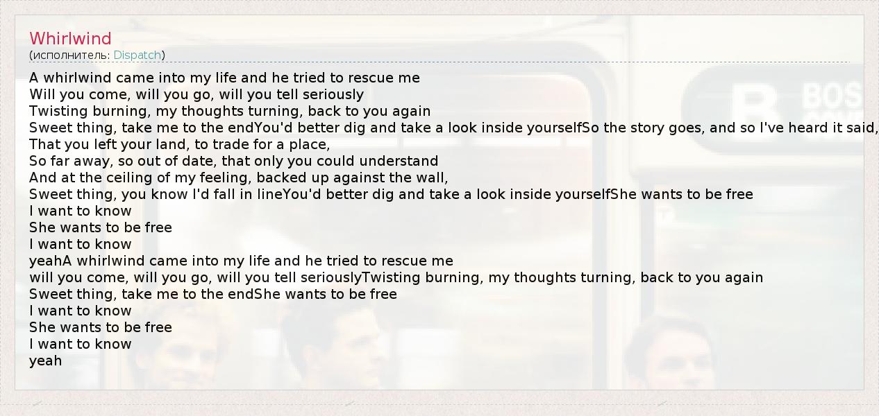 А как ты думаешь, о чем песня "Whirlwind" ?