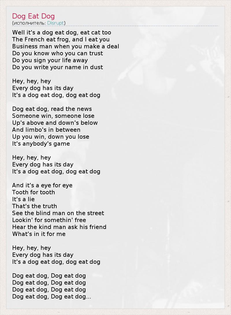 А как ты думаешь, о чем песня "Dog Eat Dog" ?