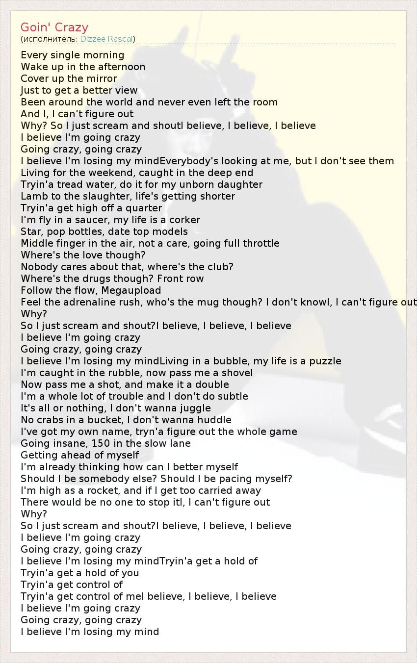 А как ты думаешь, о чем песня "Goin' Crazy" ?