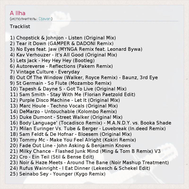 Это интересно:Джаван (Djavan) родился 27 января 1942 года в бедной семье в городе Масейо, в штате Алагоас на северо-востоке Бразилии. Как и многие бразильцы, Джаван пишет на стыке стилей - МРВ, фанк, джаз, босса-нова, афро-музыка. В юности Джаван основал группу "Luz, Som, Dimensao" (сокращенно LSD; Свет, Звук, Размерность), исполняющую каверы песен Битлс. Приехав в Рио в 1973 году, он начал работать эстрадным исполнителем... продолжение