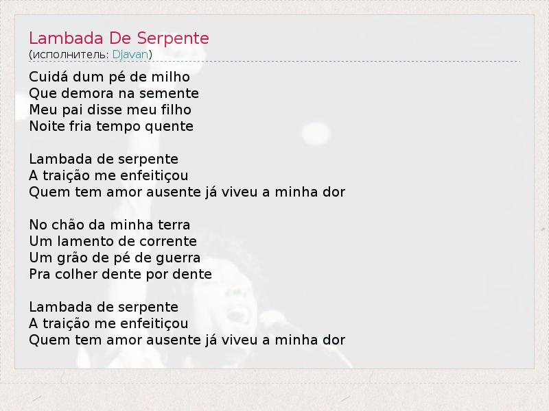 ГлавнаяИсполнителиDjavanLambada De Serpente