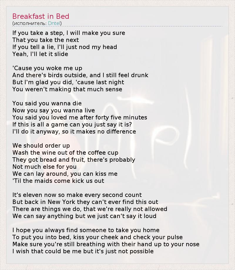 А как ты думаешь, о чем песня "Breakfast in Bed" ?