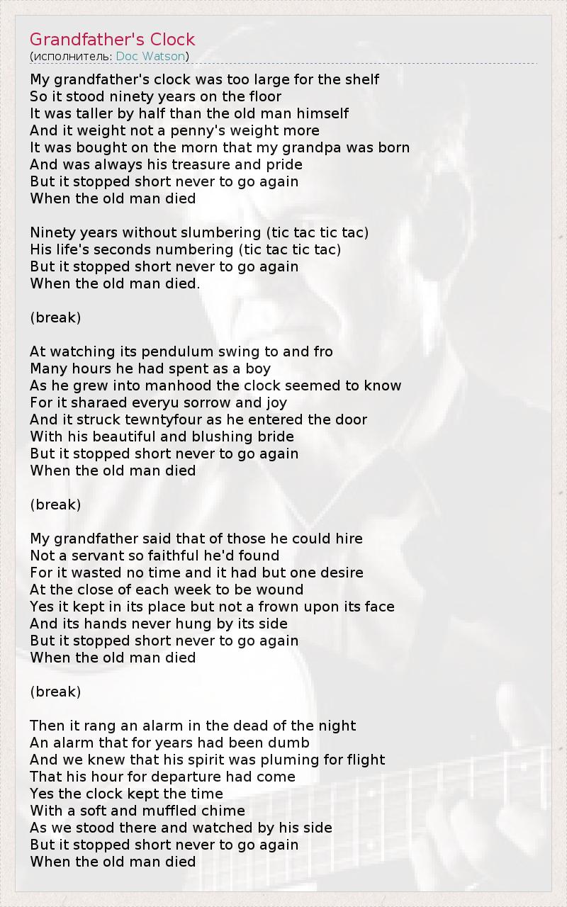 А как ты думаешь, о чем песня "Grandfather's Clock" ?
