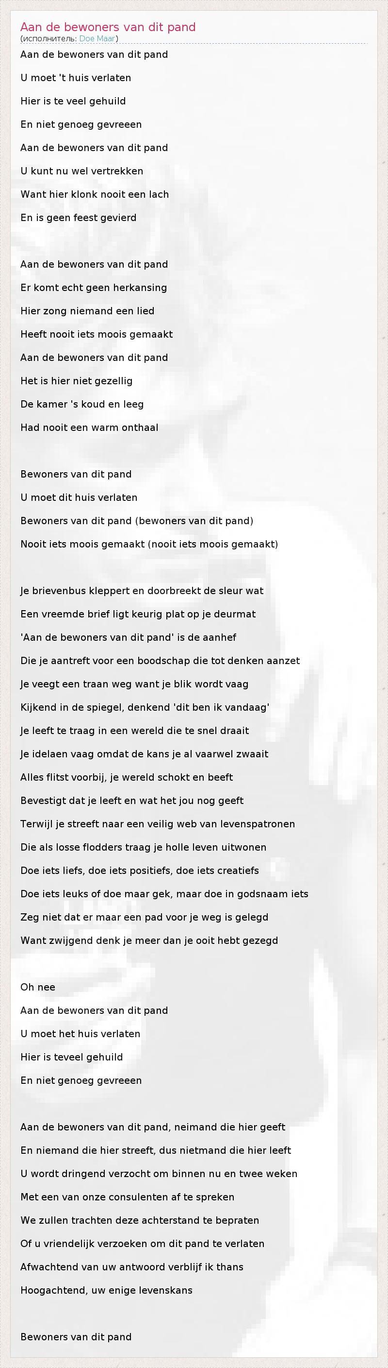 А как ты думаешь, о чем песня "Aan de bewoners van dit pand" ?