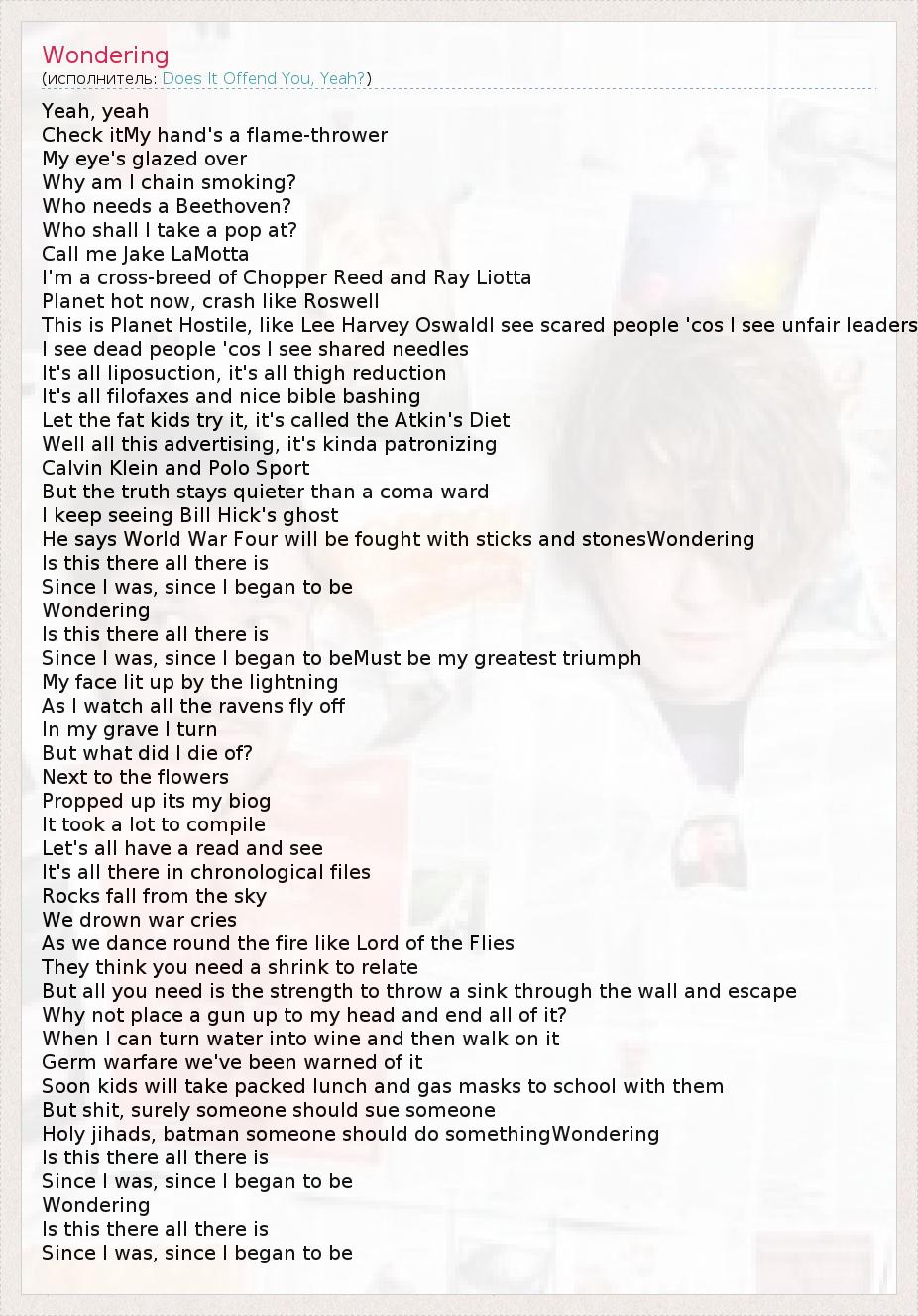 Это интересно:Does It Offend You, Yeah? - британская команда из Рединга, исполняющая электро-рок. В состав группы входят Джеймс Рашент (басс, записанный и живой вокал), Дэн Куп (синтезатор), Морган Куэйнтэнс (живой вокал, синтезатор, гитара), и Роб Блумфилд (ударные)Does It Offend You, Yeah? обычно ставят в один ряд с такими танцевальными коллективами как Daft Punk,... продолжение