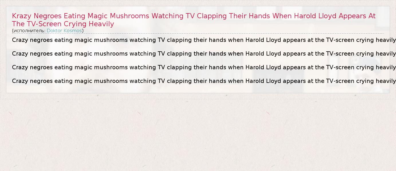 Главная→Исполнители→Doktor Kosmos→Krazy Negroes Eating Magic Mushrooms Watching TV Clapping Their Hands When Harold Lloyd Appears At The TV-Screen Crying Heavily