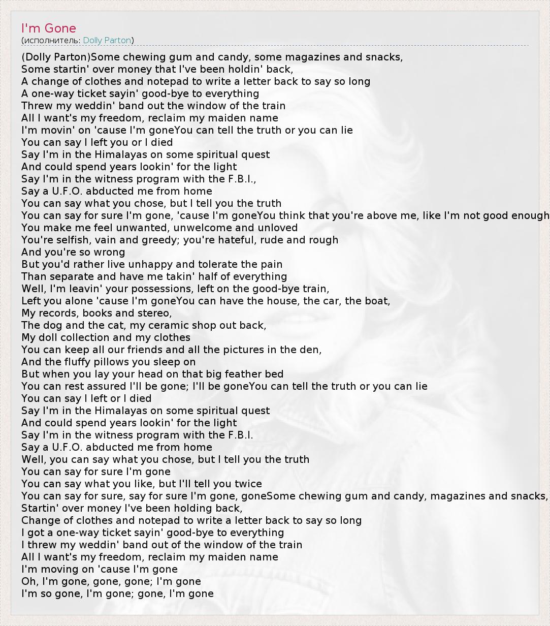 А как ты думаешь, о чем песня "I'm Gone" ?