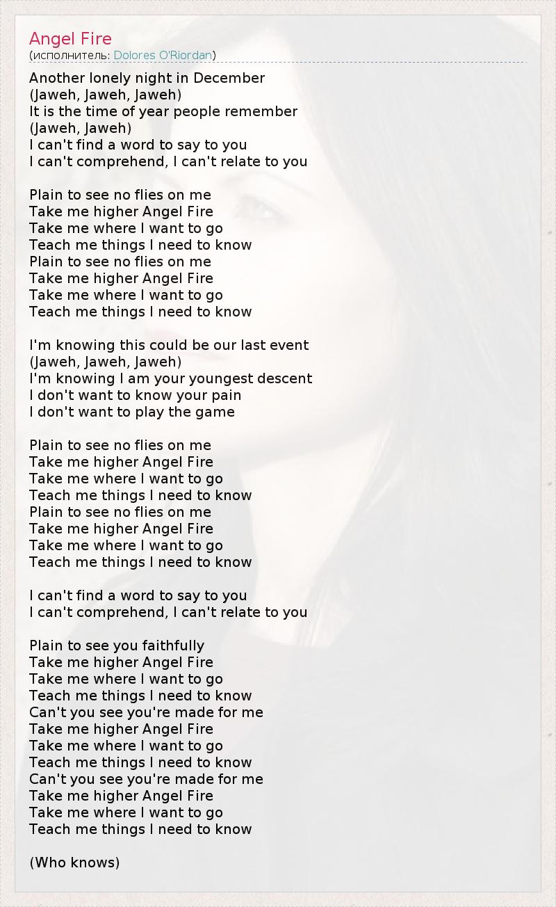 Вознеси меня, Ангел огня,