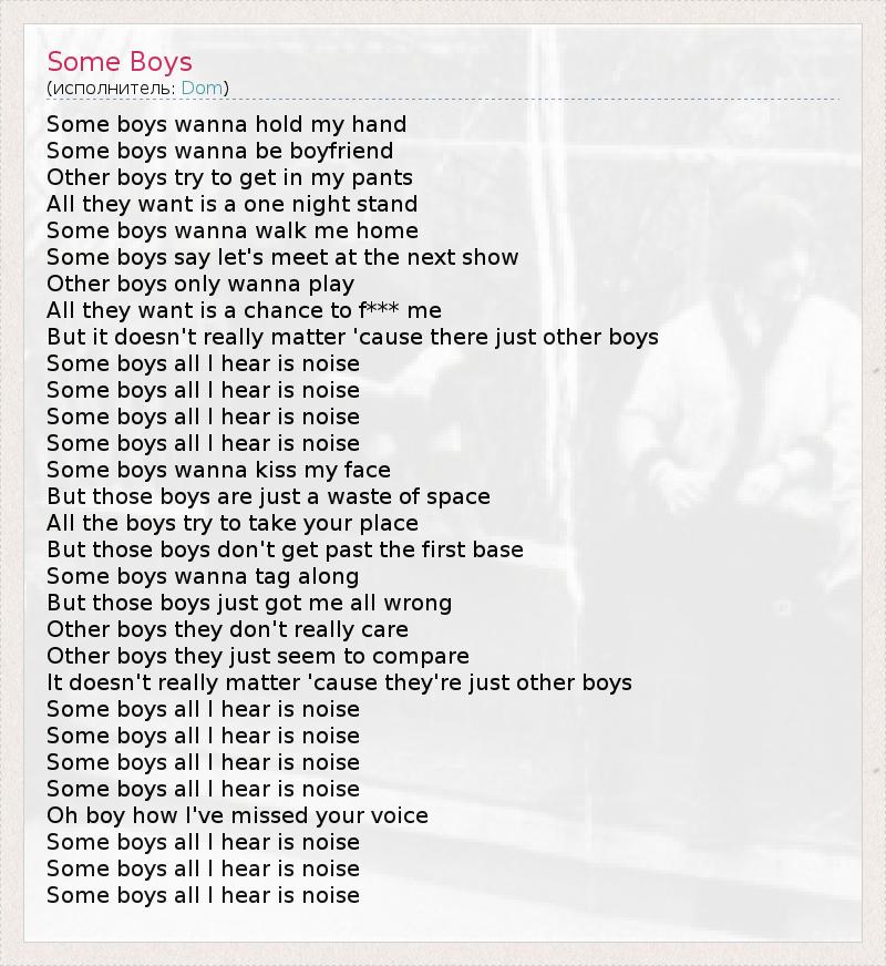 А как ты думаешь, о чем песня "Some Boys" ?
