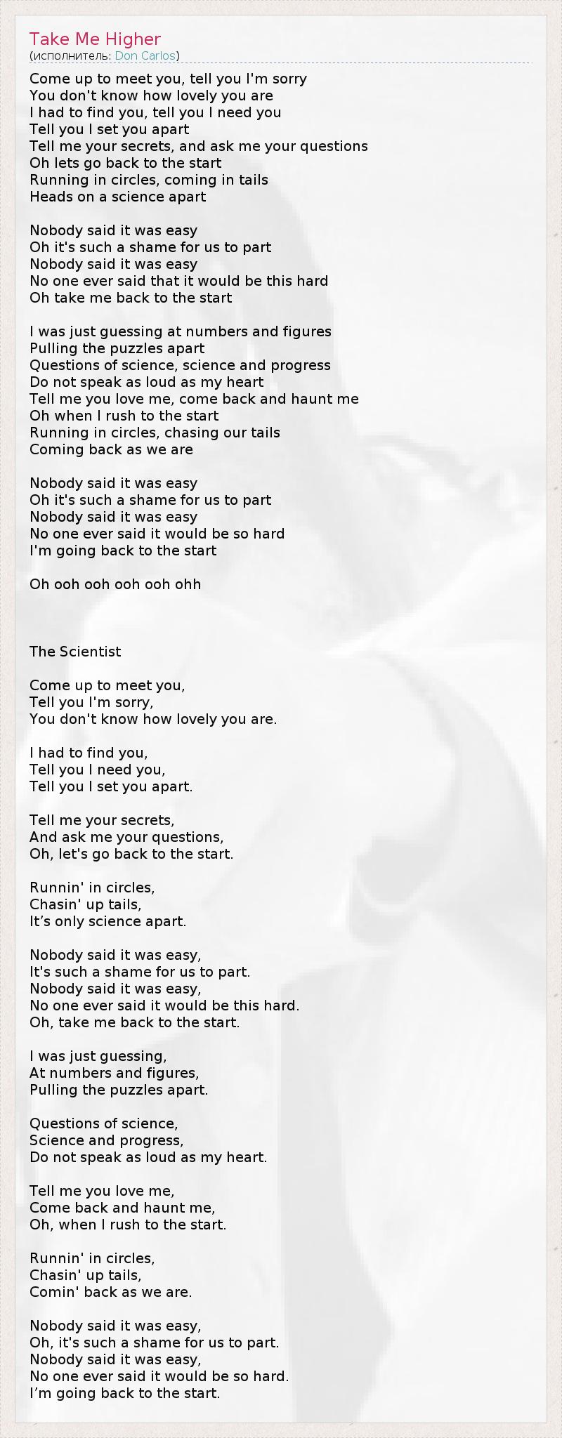 А как ты думаешь, о чем песня "Take Me Higher" ?