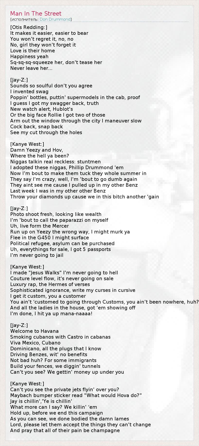 А как ты думаешь, о чем песня "Man In The Street" ?