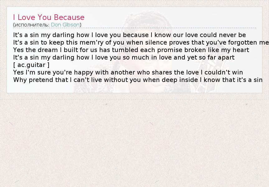 А как ты думаешь, о чем песня "I Love You Because" ?