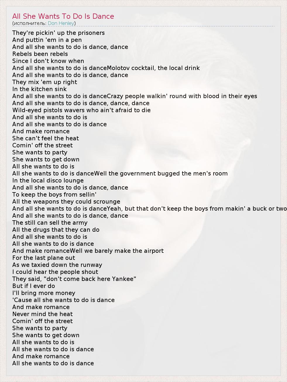 ГлавнаяИсполнителиDon HenleyAll She Wants To Do Is Dance