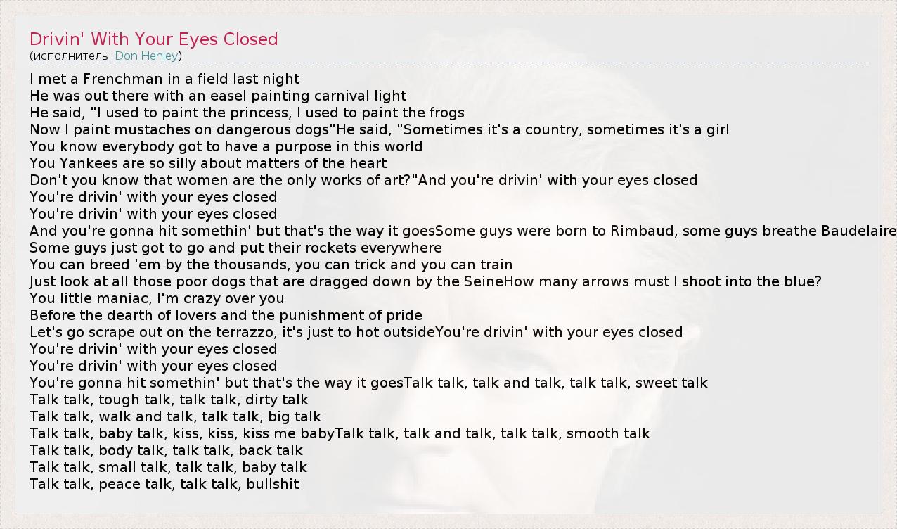 ГлавнаяИсполнителиDon HenleyDrivin' With Your Eyes Closed