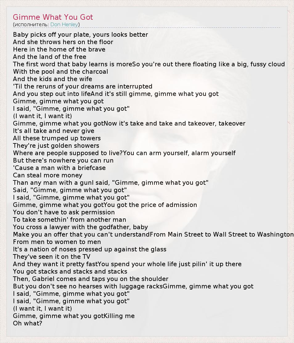 А как ты думаешь, о чем песня "Gimme What You Got" ?