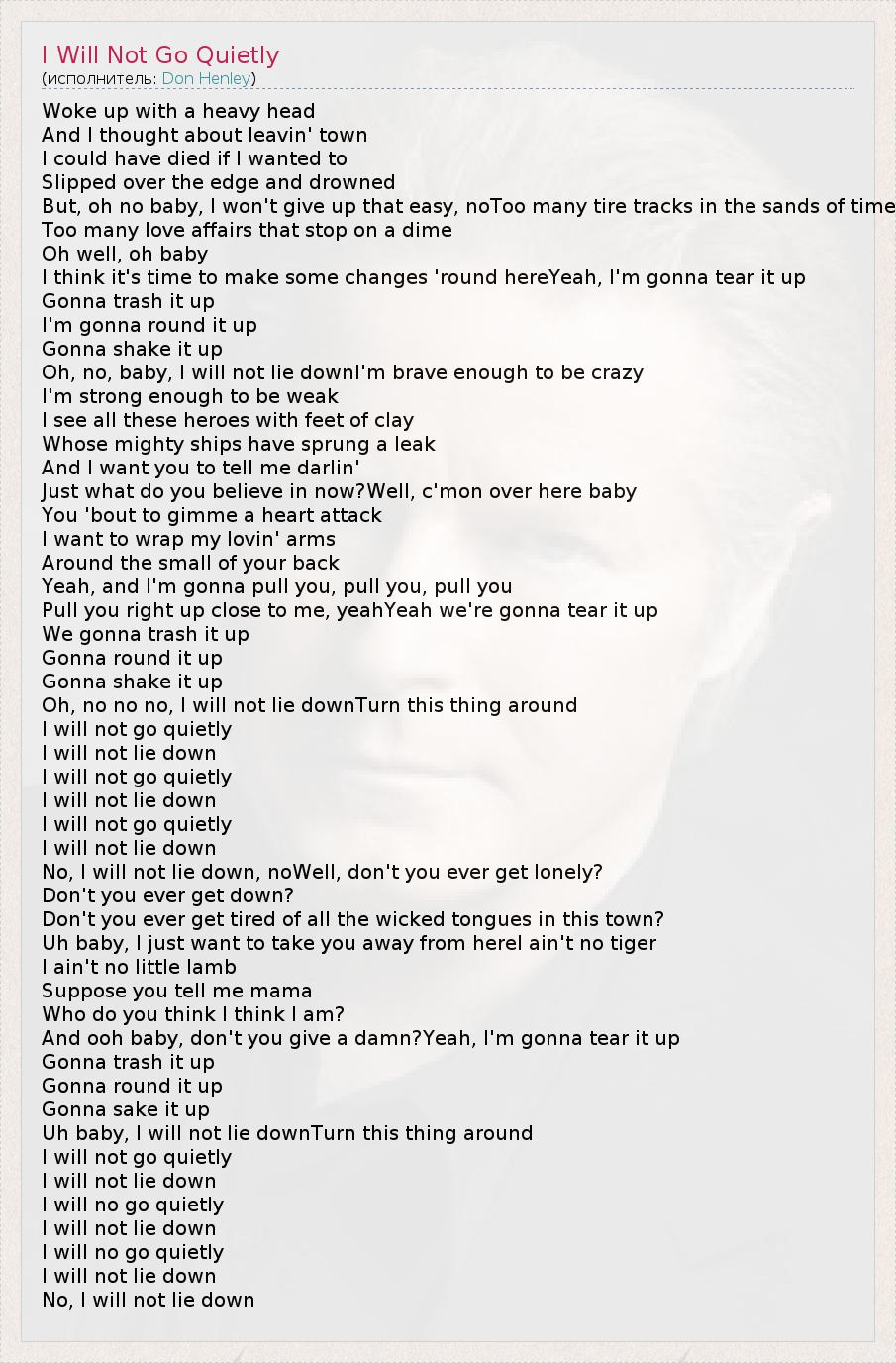 А как ты думаешь, о чем песня "I Will Not Go Quietly" ?