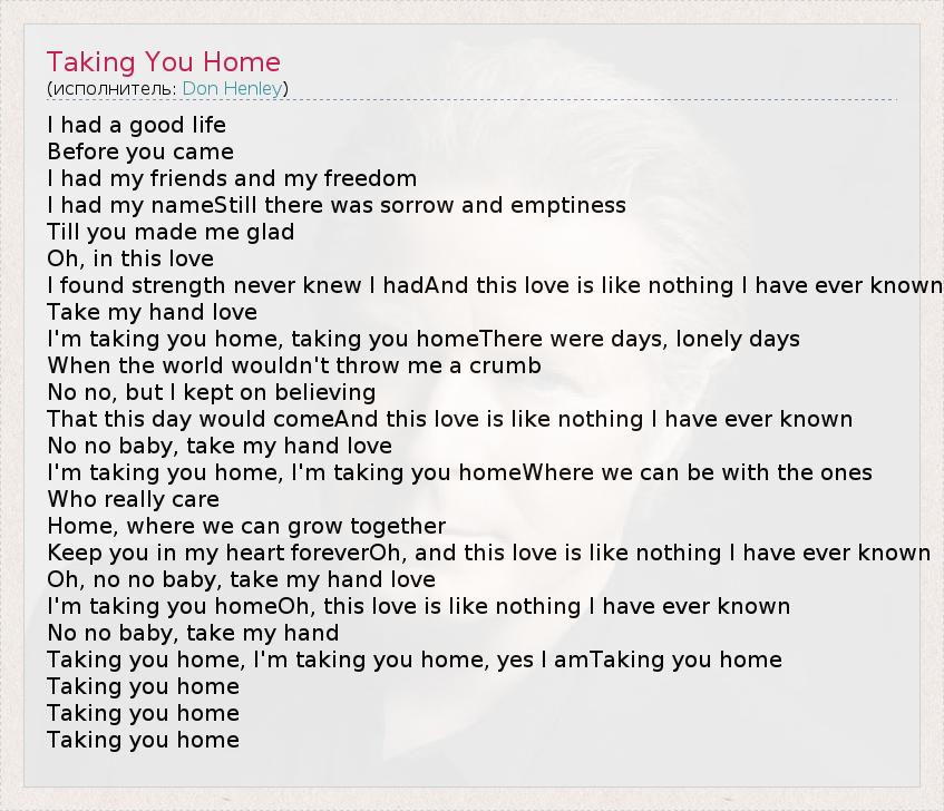 А как ты думаешь, о чем песня "Taking You Home" ?