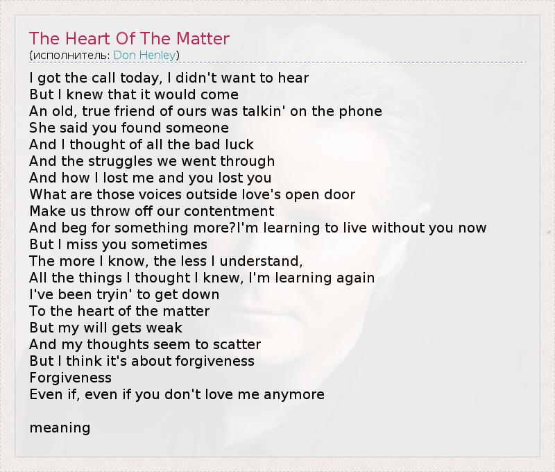 А как ты думаешь, о чем песня "The Heart Of The Matter" ?