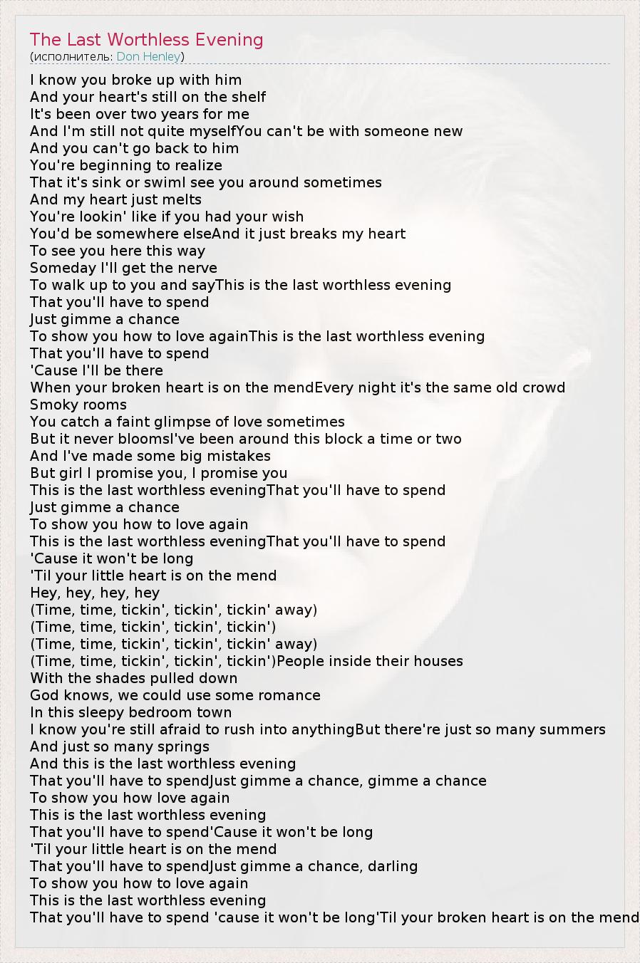 ГлавнаяИсполнителиDon HenleyThe Last Worthless Evening