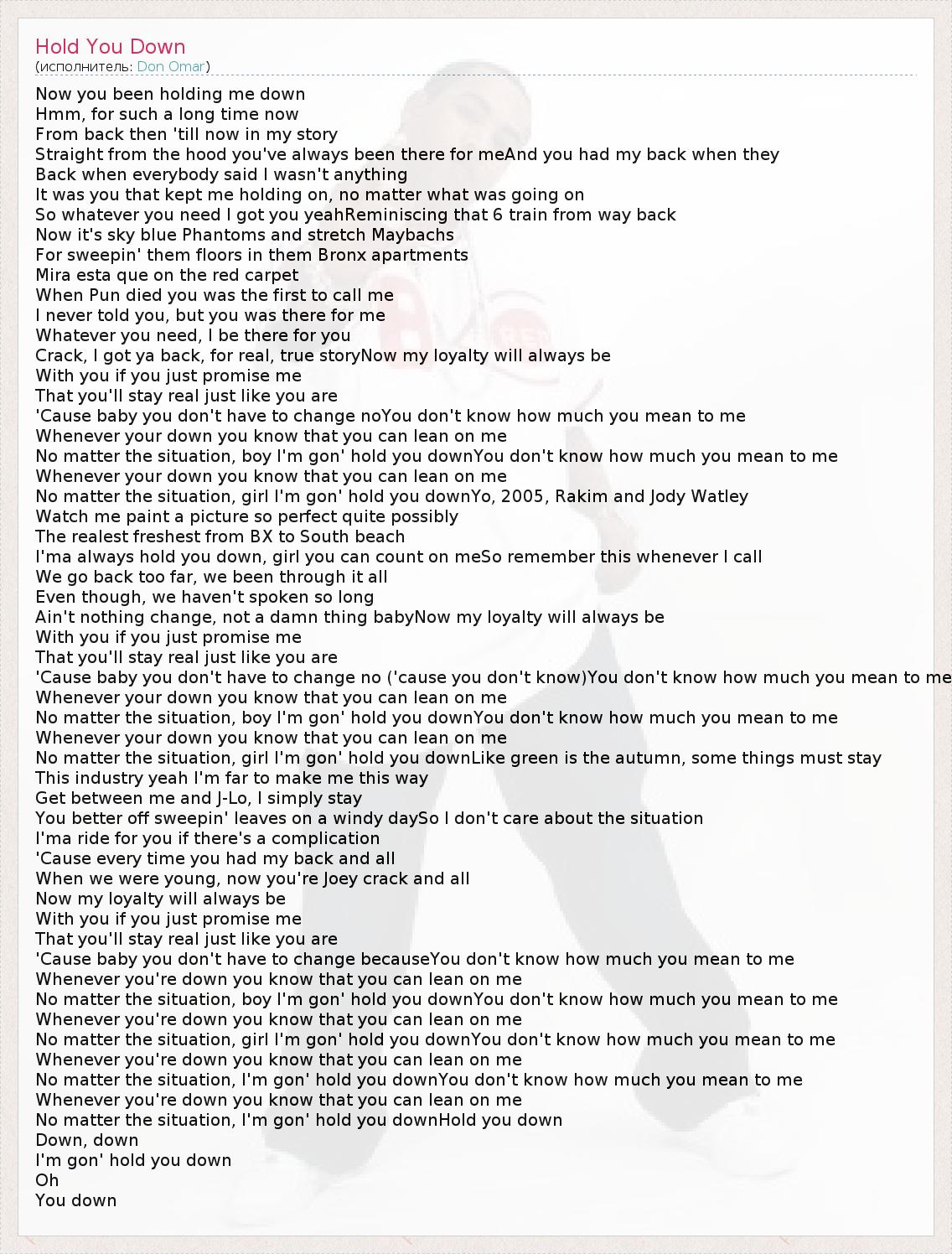 А как ты думаешь, о чем песня "Hold You Down" ?
