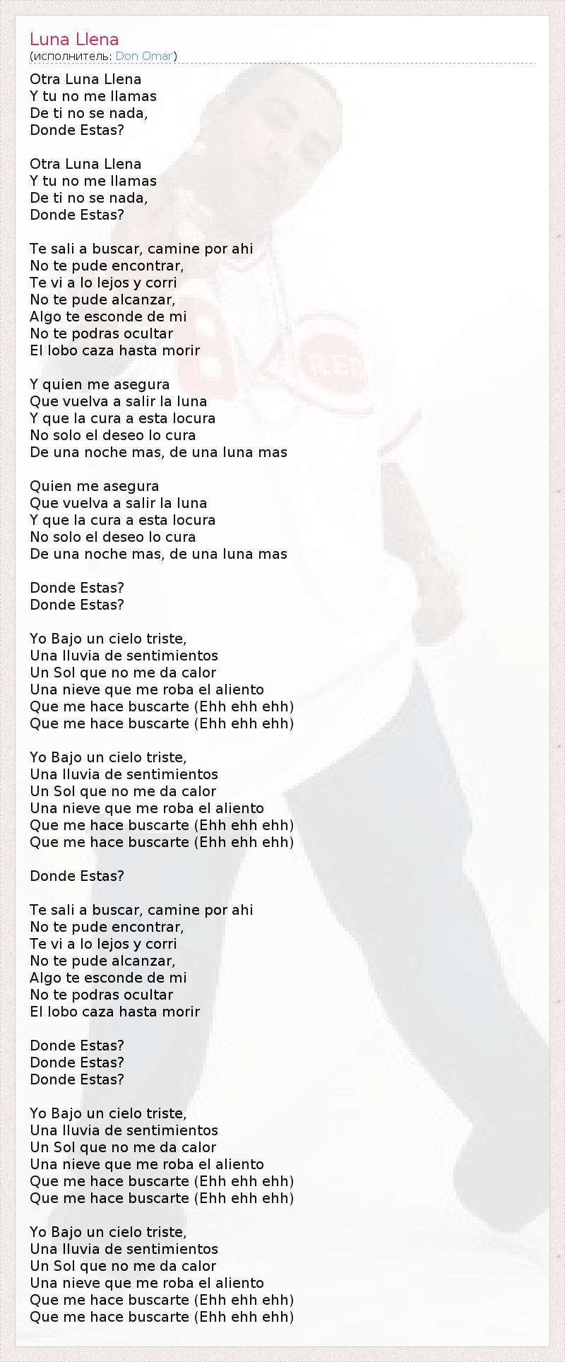 А как ты думаешь, о чем песня "Luna Llena" ?
