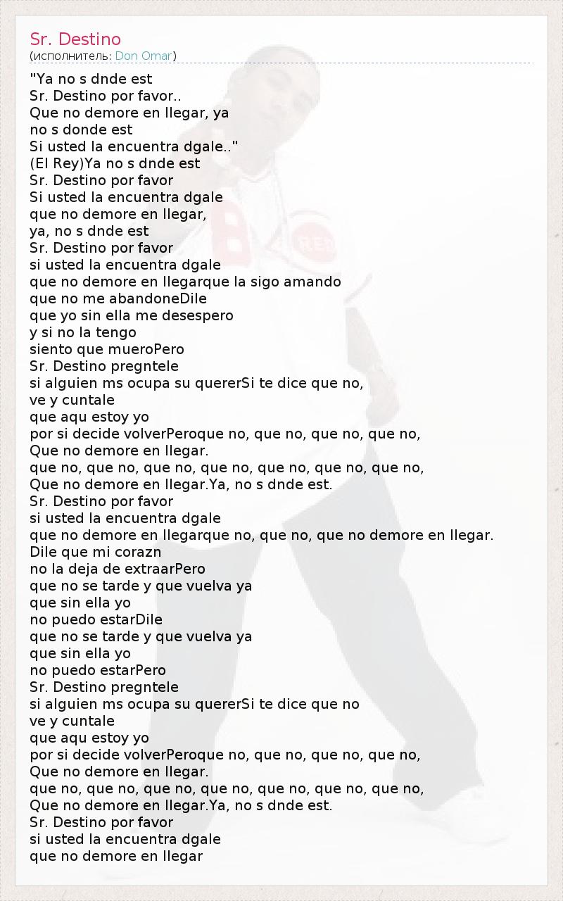 А как ты думаешь, о чем песня "Sr. Destino" ?